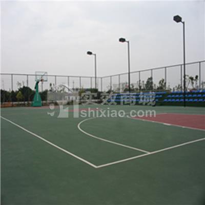篮球场为三道喷涂,二道加砂面层的15%,第三道不加砂。方法:先将A组份面层与砂搅拌均匀后加B组份,再加水搅拌均匀喷涂。